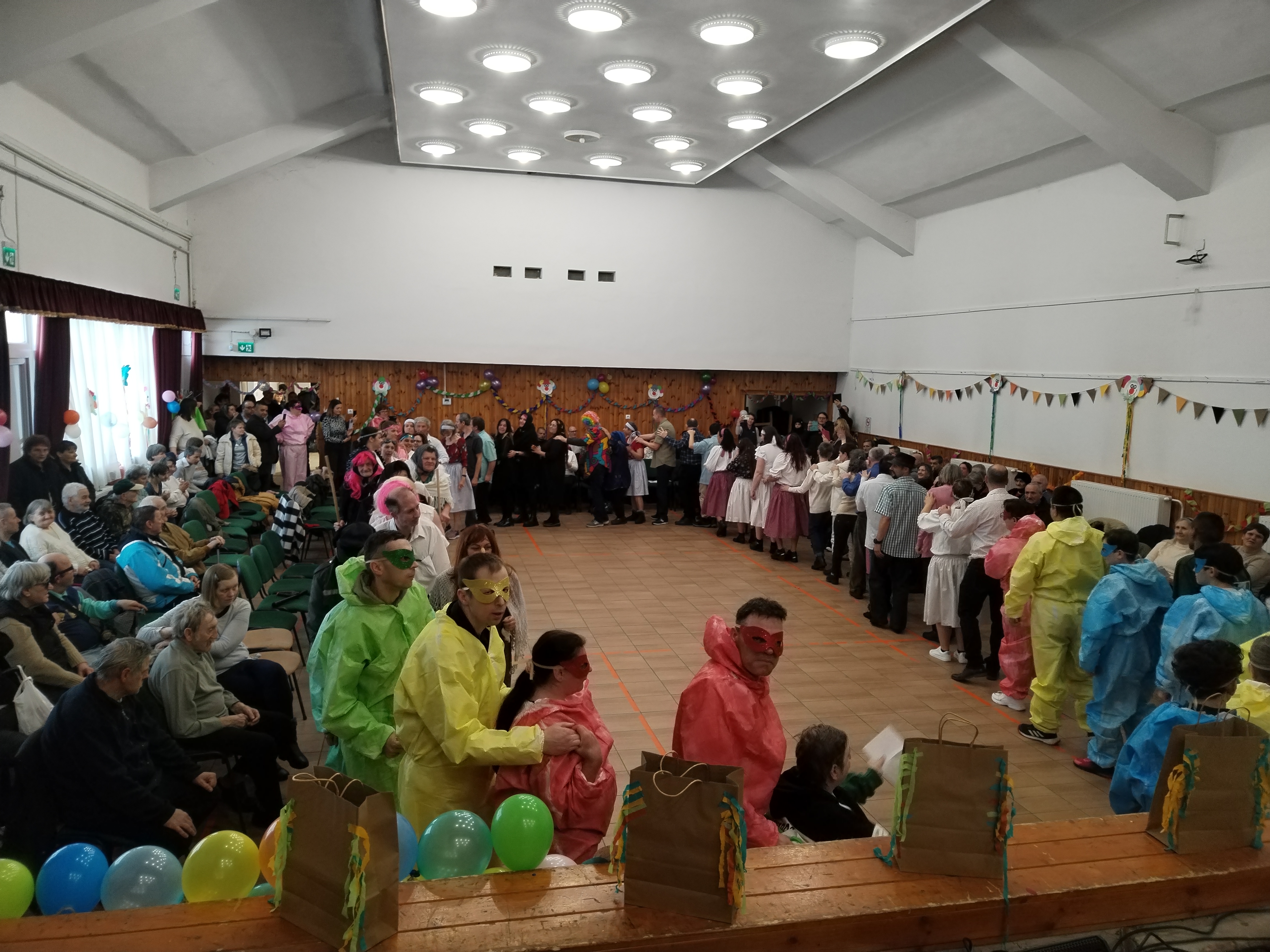 A Gondviselés Integrált Szociális Intézmény Somogy Vármegyében idén is elérkezett a nagy nap, amikor az intézmény összes telephelyéről és a támogatott lakhatásból érkezett ellátottat összegyűltek, hogy közösen farsangoljanak. A zord időjárás ellenére derűs hangulatban telt el a délután, a boszorkányok táncát kabaréjelenet, a gumimacikat szinkronúszók, az ellátottak kedvenc zenéjére összeállított táncos produkciót Szerelemdoktor követte. A délután további jó hangulatáról egy kolléga gondoskodott, és természetesen most sem maradhatott ki mindenki kedvence a farsangi fánk sem.
